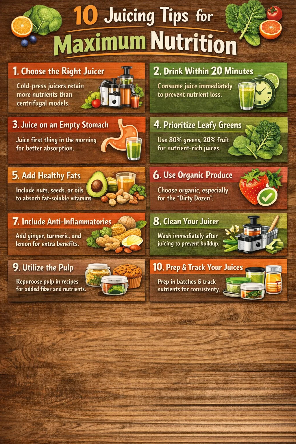 Mieux vaut faire des jus occasionnels que pas de jus, mais les jus intentionnels – où vous comprenez quels nutriments vos recettes apportent – produisent les résultats de santé les plus ciblés. Si vous faites des jus pour soutenir la santé immunitaire, les priorités de vos recettes sont différentes de celles si vous faites des jus pour traiter une carence en fer, une inflammation ou des problèmes digestifs.