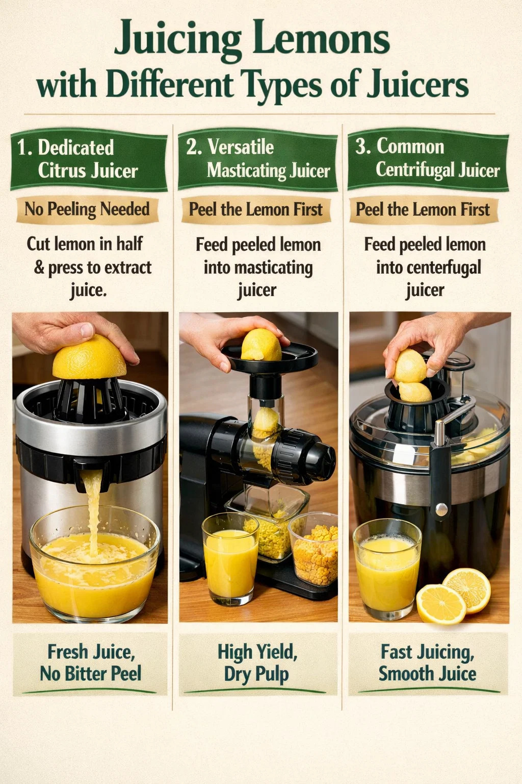 Remarque importante : vous devez d'abord peler le citron. Parce que ce type de machine broie tout ce qui entre, si vous le pressez avec la peau, les huiles essentielles et l'amertume de la peau seront concentrées dans le jus, le rendant incroyablement amer.